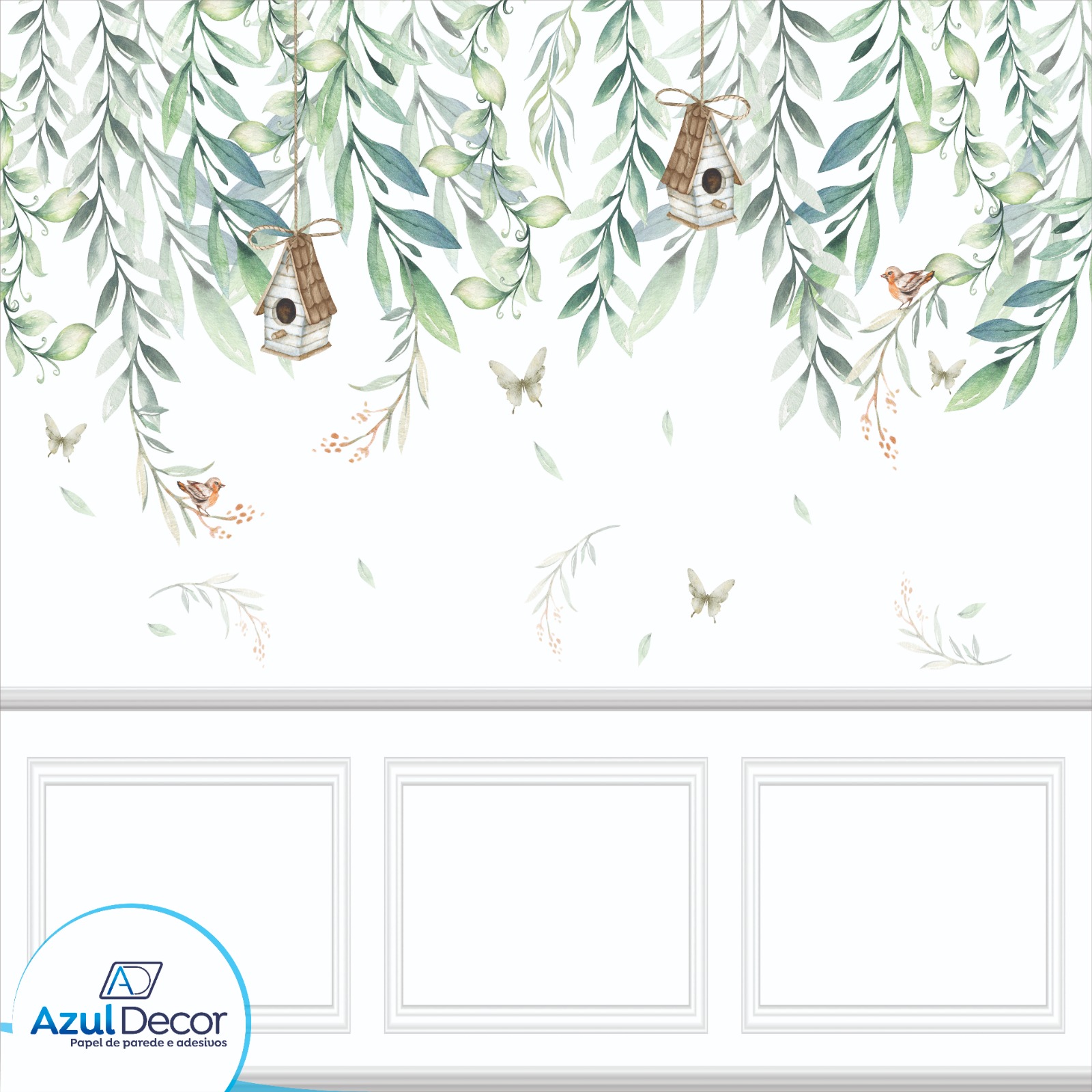 Papel de Parede Casinha de Pássaros com Boiserie